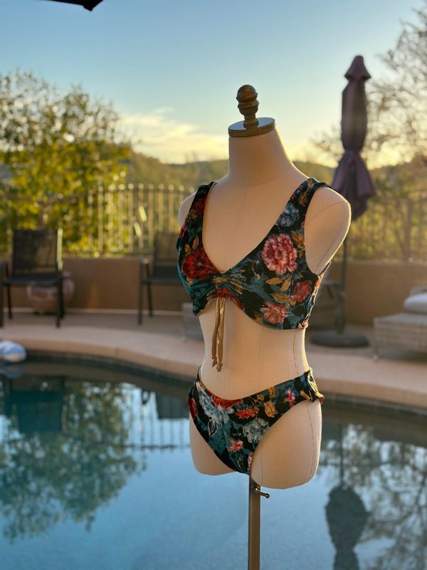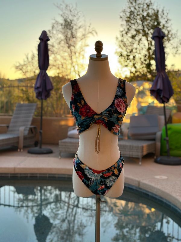 Floral gold velvet water scrunchies